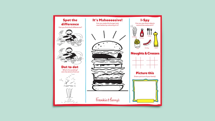A family friendly style for a family focussed brand. I was given the dream task of illustrating a diverse series of characters enjoying the Frankie & Benny's experience. These appeared throughout the brand's many restaurants, on menus and signage as well as online playful gif animations. Working closely with the brilliant team at venturethree I was able to bring to life the spirit of the brand in a bold and eye-catching way, connecting directly with the consumers and fans of the restaurant.